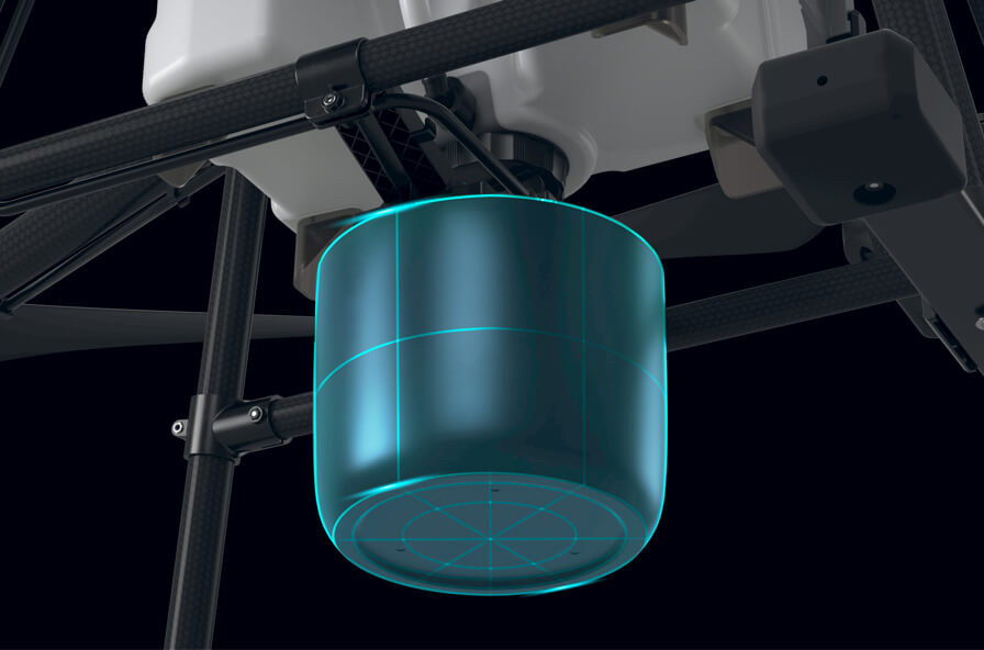 T20 搭载全向数字雷达,可对水平全向障碍物进行识别,同时具备自动绕障及仿地飞行功能,充分保障作业安全。雷达运作不受环境光线及尘土影响,可全天候感知农田环境,飞行安全更进一步。T20 还配备实时图像监控系统及夜间探照灯,让你轻松监控设备作业环境。